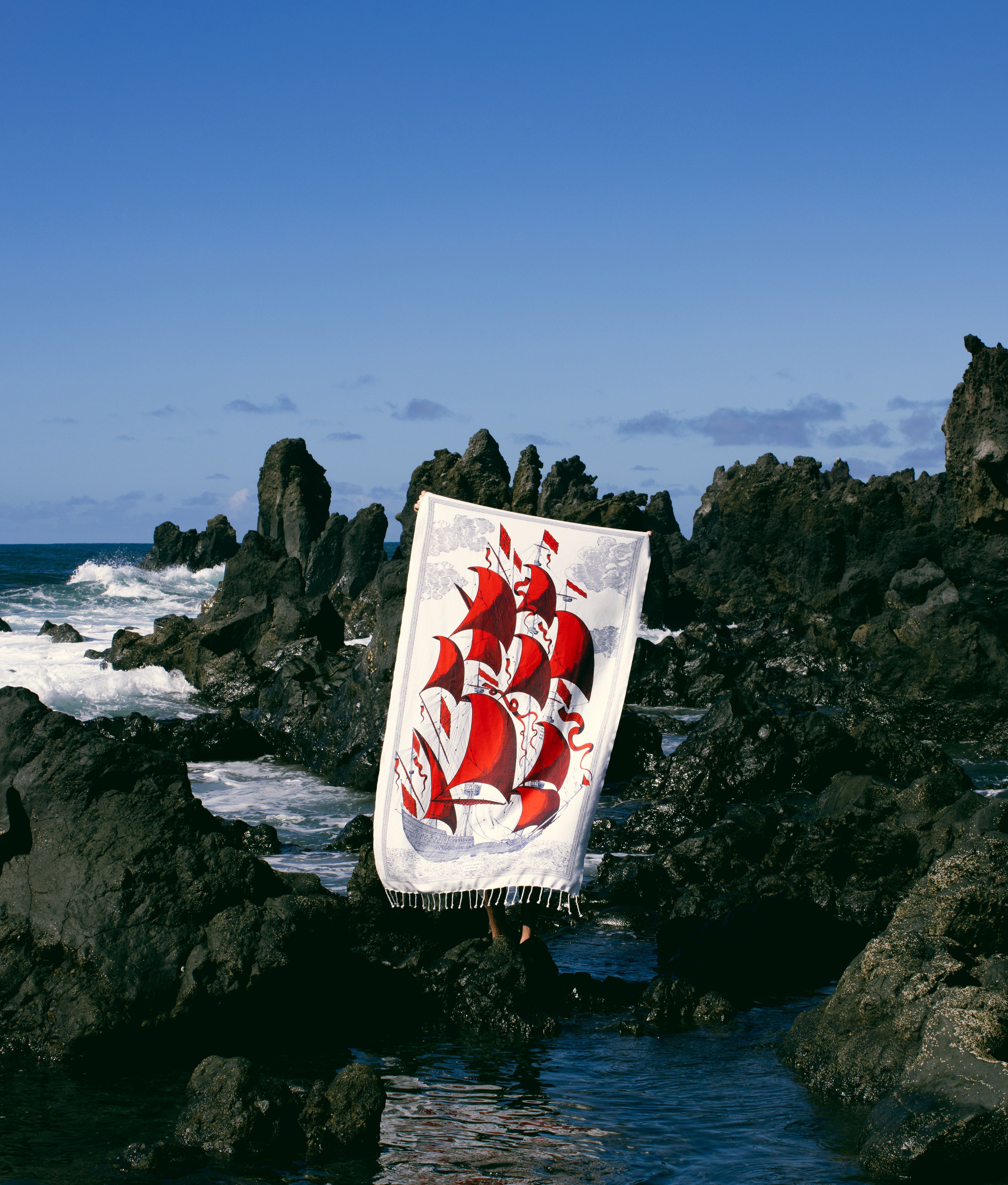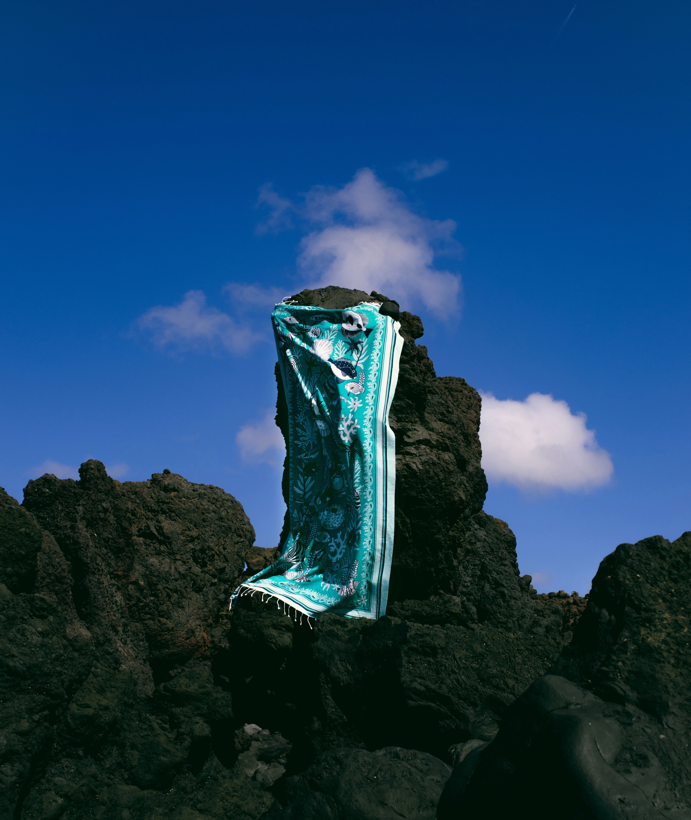 Over time, the colorful cotton of the fouta has inspired many other uses: worn on the head as an accessory, as a shawl when temperatures drop, or as a pareo — with all the possibilities that come with it.