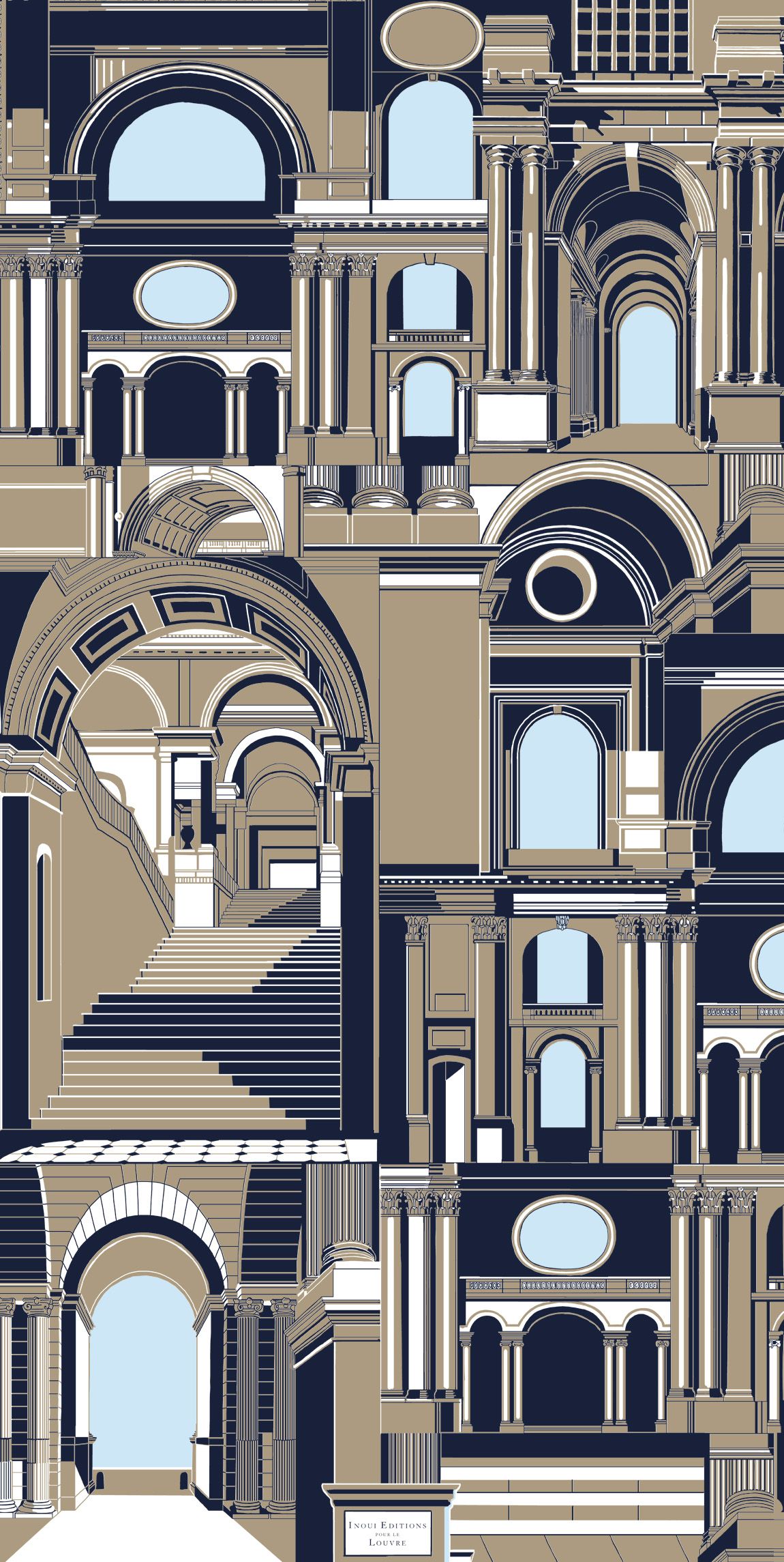 Inoui Editions et le musée du Louvre annoncent leur toute première collaboration. Archives est une visite imaginaire des coulisses du musée, à la découverte des ateliers de moulages. Inoui Editions puise son inspiration dans le département des Antiquités grecques étrusques et romaines, des Objets d'art du Moyen Age, de la Renaissance et des temps modernes, du service de l'histoire du Louvre et des Antiquités orientales. Inoui Editions compose avec ce modèle un merveilleux collage de motifs, de sculptures antiques et autres bas-reliefs historiques en provenance de différentes époques et continents.